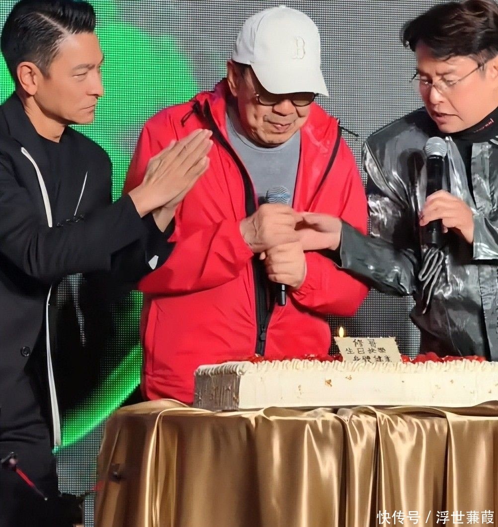 53. 刘德华在一旁静静鼓掌祝贺,生日蛋糕上清晰写着“修哥生日快乐,身体健康”字样。
